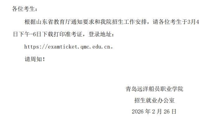 关于打印2026年单招、综合评价招生考试准考证的通知